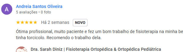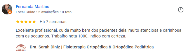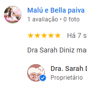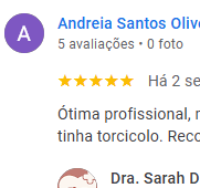 “Profissional muito competente!!! Ela sempre é atenciosa nos atendimentos , preocupa com o paciente , realmente a gente vê que ela tem amor a profissão.”