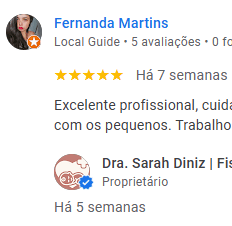 A Dra. Sarah Diniz é fisioterapeuta especializada em Ortopedia e Pediatria, com foco no tratamento de bebês, crianças e adultos que precisam recuperar o movimento, aliviar dores e se desenvolver com equilíbrio e segurança.