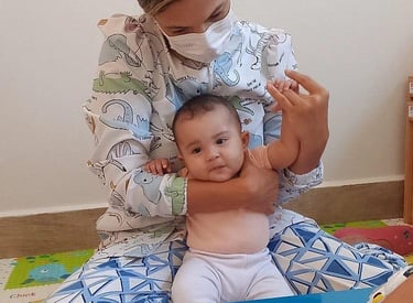 O torcicolo congênito e a assimetria craniana são alterações comuns nos primeiros meses de vida e muitas vezes estão relacionadas. O encurtamento de um dos músculos do pescoço pode causar inclinação da cabeça e favorecer o achatamento de um dos lados do crânio. A fisioterapia pediátrica atua com técnicas suaves, estímulos posturais e orientações aos pais, promovendo o realinhamento da cabeça e o equilíbrio no desenvolvimento do bebê.