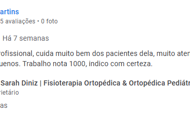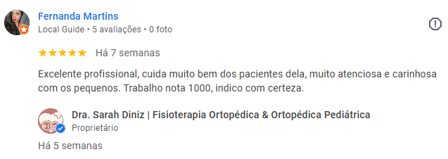 “Profissional muito competente!!! Ela sempre é atenciosa nos atendimentos , preocupa com o paciente , realmente a gente vê que ela tem amor a profissão.”
